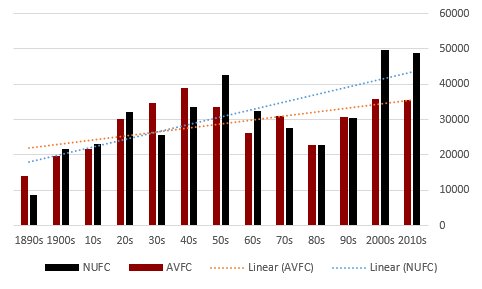 Our spike in attendances in the 90s coincided with a few things (Keegan and Sir John Hall rescuing our club, rebirth of national interest in the game post-hooliganism, Sky, etc.) and looks almost identical to your own (using the stats that Weedy helpfully links to above). Was your own increase due to only one variable? Or was it because of a host of reasons?