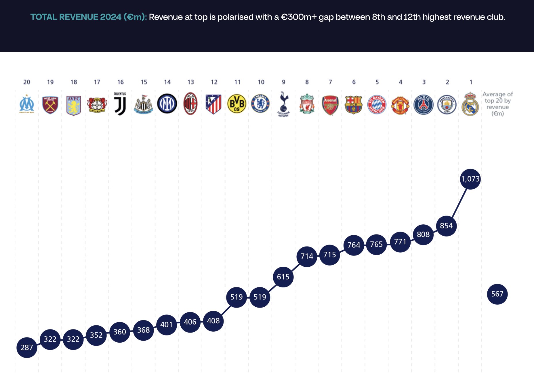 Quote from: Demitri_C on March 06, 2025, 04:57:03 PMQuote from: Tuscans on March 06, 2025, 03:53:51 PM🚨UEFA's 2024 Financial Landscape report is out and more or less confirms that Villa will fail UEFA Squad Cost test (possibly sustainability too). Chelsea also appear to fail. Newcastle very close but not in Europe this season. PSG and Roma in settlement regimes so not sure how those are impacted/dealt with.NB: this is the raw Wage:Turnover ratio but directionally indicative of SCR. No major shocks but also shows UEFA's appraisal of revenue - meaningful differences with Chelsea (€25m lower vs Deloitte (€545m))..this whole thing is stupid. We have been in CL one season, we dont have the advantage as other sides who have had Cl money season in and season out. How do they expect teams like villa to compete if you are a newbie in CL?Its ridiculous. Good luck to forest if they qualify as im sure they will be worse than usSponsors don't want/care about new clubs like Villa competing. Bigger, established clubs like Real, Barcelona, Liverpool, City etc bring more eyes to the prize, generating bigger profits for UEFA. That's basically what it boils down to.