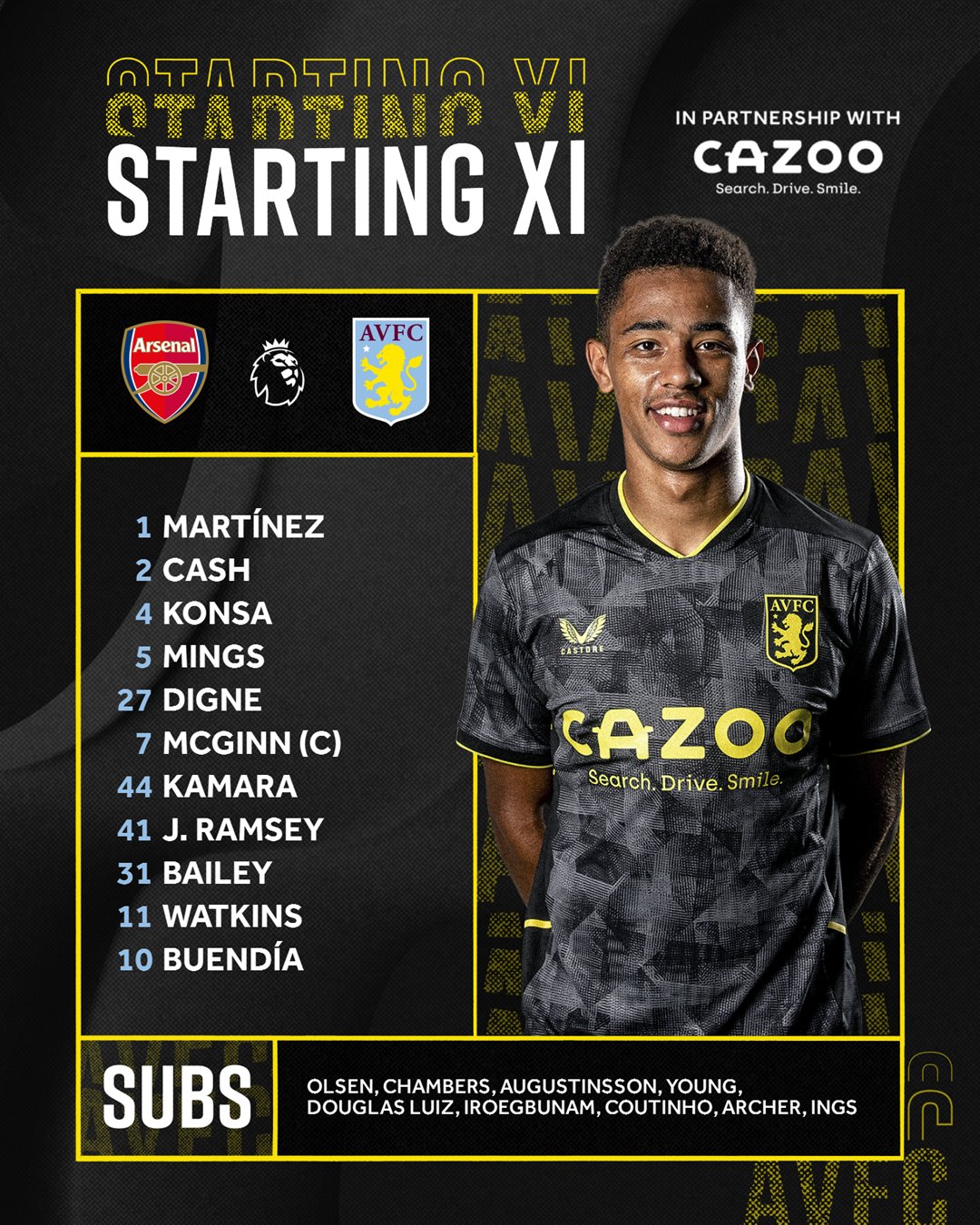 The undroppable McGinn keeps his place. Returns for Mings, JJ, Buendia and Bailey. No place for Ings, Luiz or Coutinho