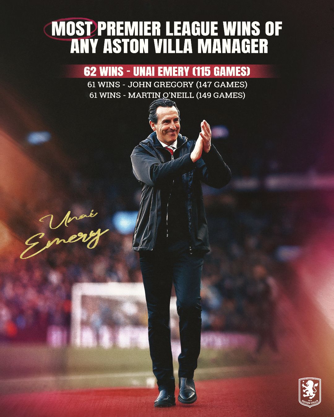 If you go back to the pre-history of football before the 1992/3 season - he’s got the 7th highest number of wins (84) of all Villa managers, and could realistically be in the top 5 by the end of the month (needs 5 more victories to go ahead of Vic Crowe and Eric Houghton)