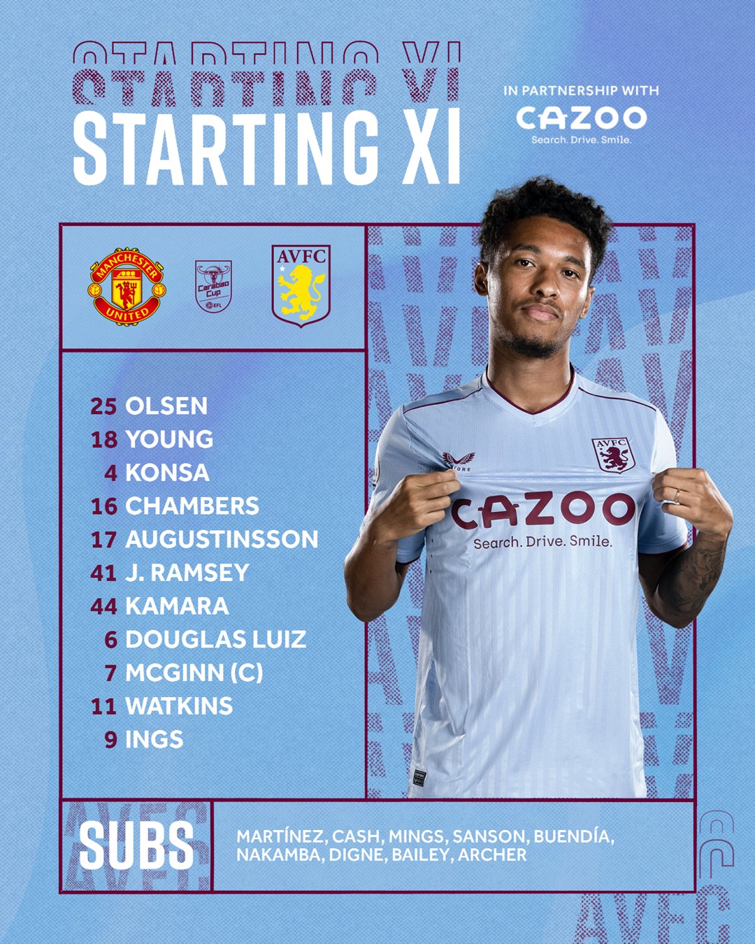 Let's hope Unai's cup luck carries on because 1996 is a long time ago. McGinn back in and as captain worries me. We will need to see where he is playing.
